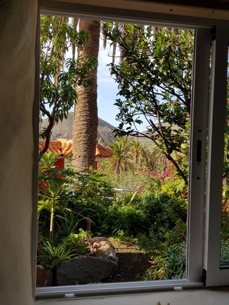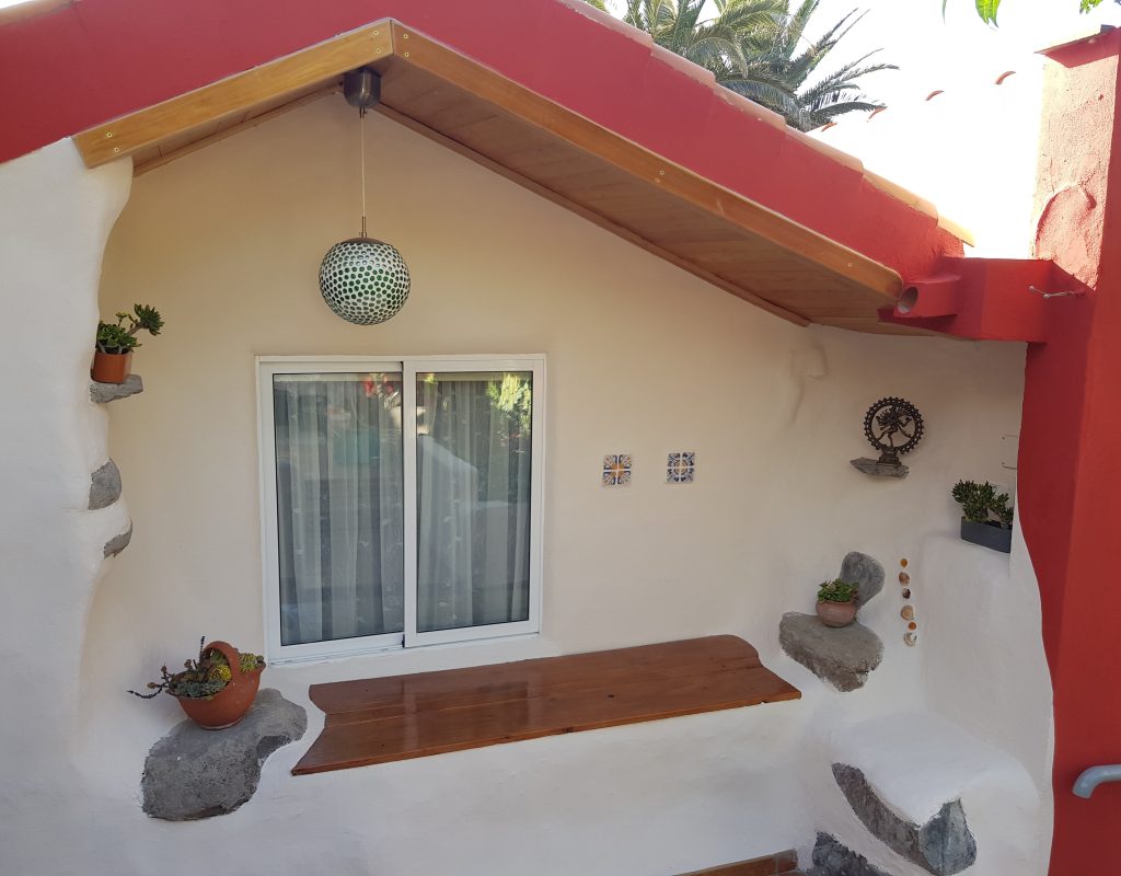 Die Ferienwohnung „Kleiner Italiener“ ist mediterran gestaltet mit offenem Wohn-/Küchenbereich mit Schlafsofa und Duschbad. Das Schlafzimmer liegt direkt nebenan im alten kanarischen Steinhäuschen „Seute Deern“ mit maritimer Note. Das Steinhäuschen hat einen extra Eingang, eine kleine Terrasse unterm Orangenbaum mit Sitzbänken und einen schönen Blick in den Garten. Man kann drinnen essen oder draußen an einem privaten kleinen Bistrotisch oder an einer langen Tafel auf der Gemeinschaftsterrasse. Der Wohn-/Küchenbereich ist etwas hellhörig, man hört von der darüberliegenden Wohnung Schritte und Stimmen, im Schlafzimmer-Häuschen nebenan hört man davon aber nichts, nur himmlische Ruhe wie im Rest von Tazo!